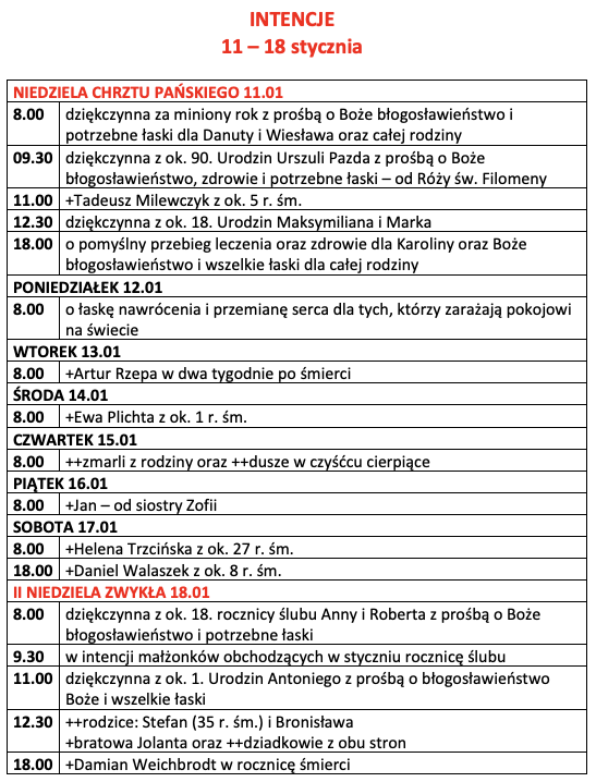 OGŁOSZENIA DUSZPASTERSKIE NIEDZIELA CHRZTU PAŃSKIEGO 11.01.2026