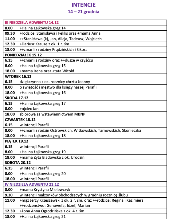 OGŁOSZENIA DUSZPASTERSKIE III Niedziela Adwentu 14.12.2025