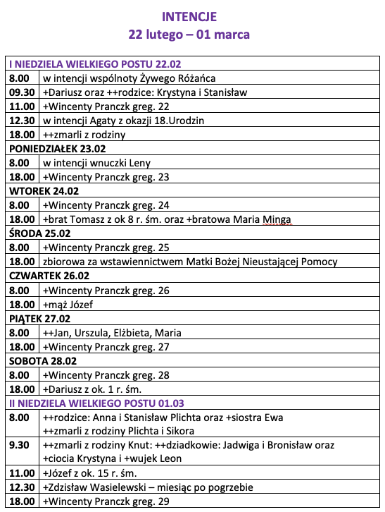INTENCJE 20260222-20260301