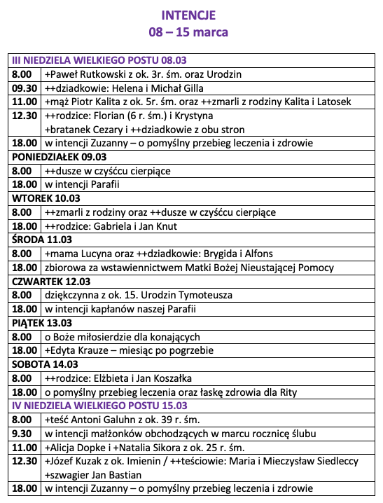 OGŁOSZENIA DUSZPASTERSKIE III Niedziela Wielkiego Postu 08.03.2026