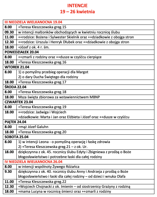 INTENCJE 20260419-20260426