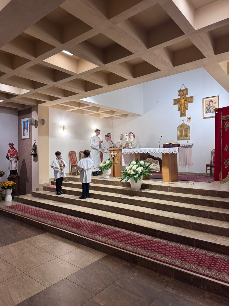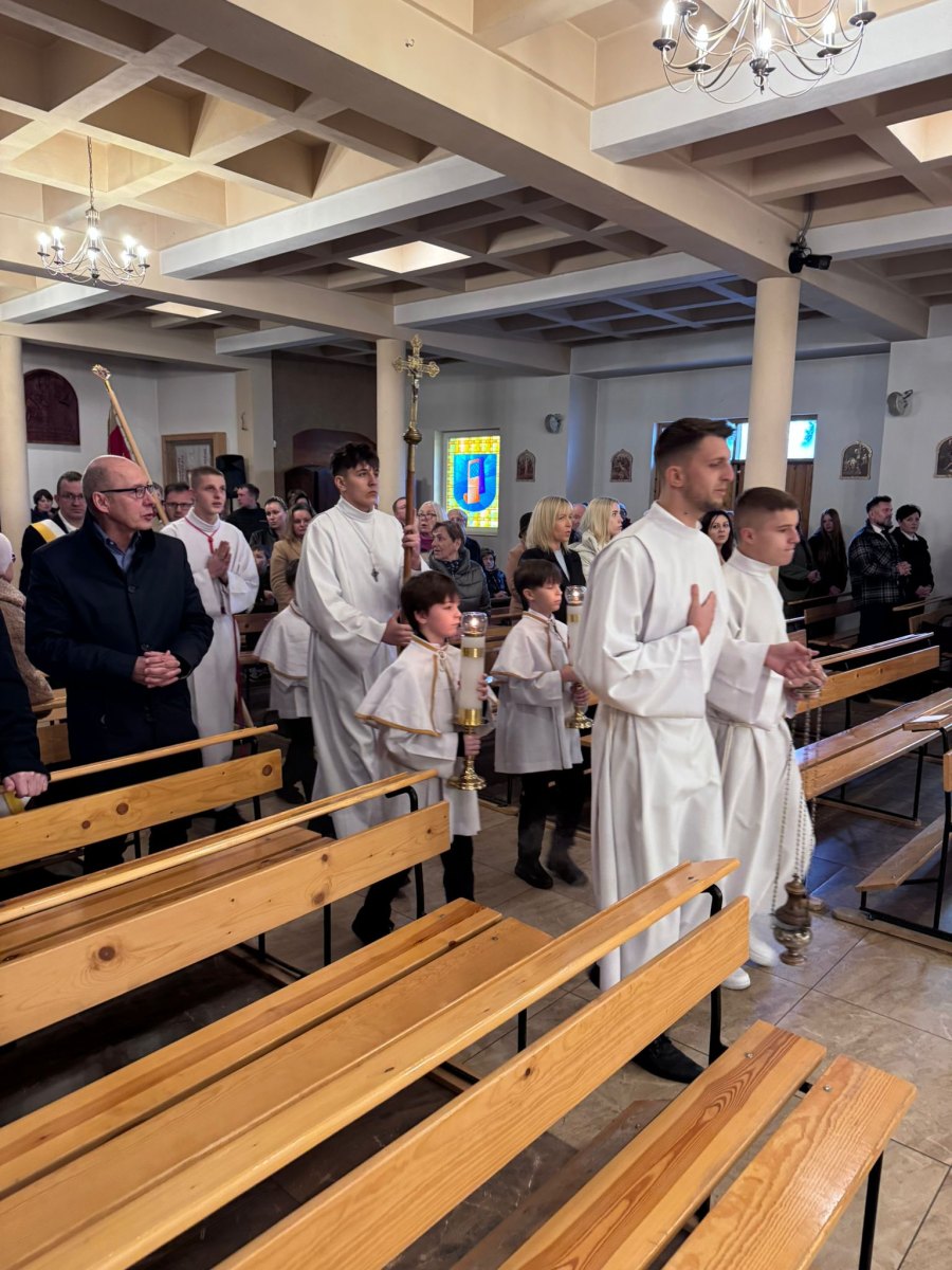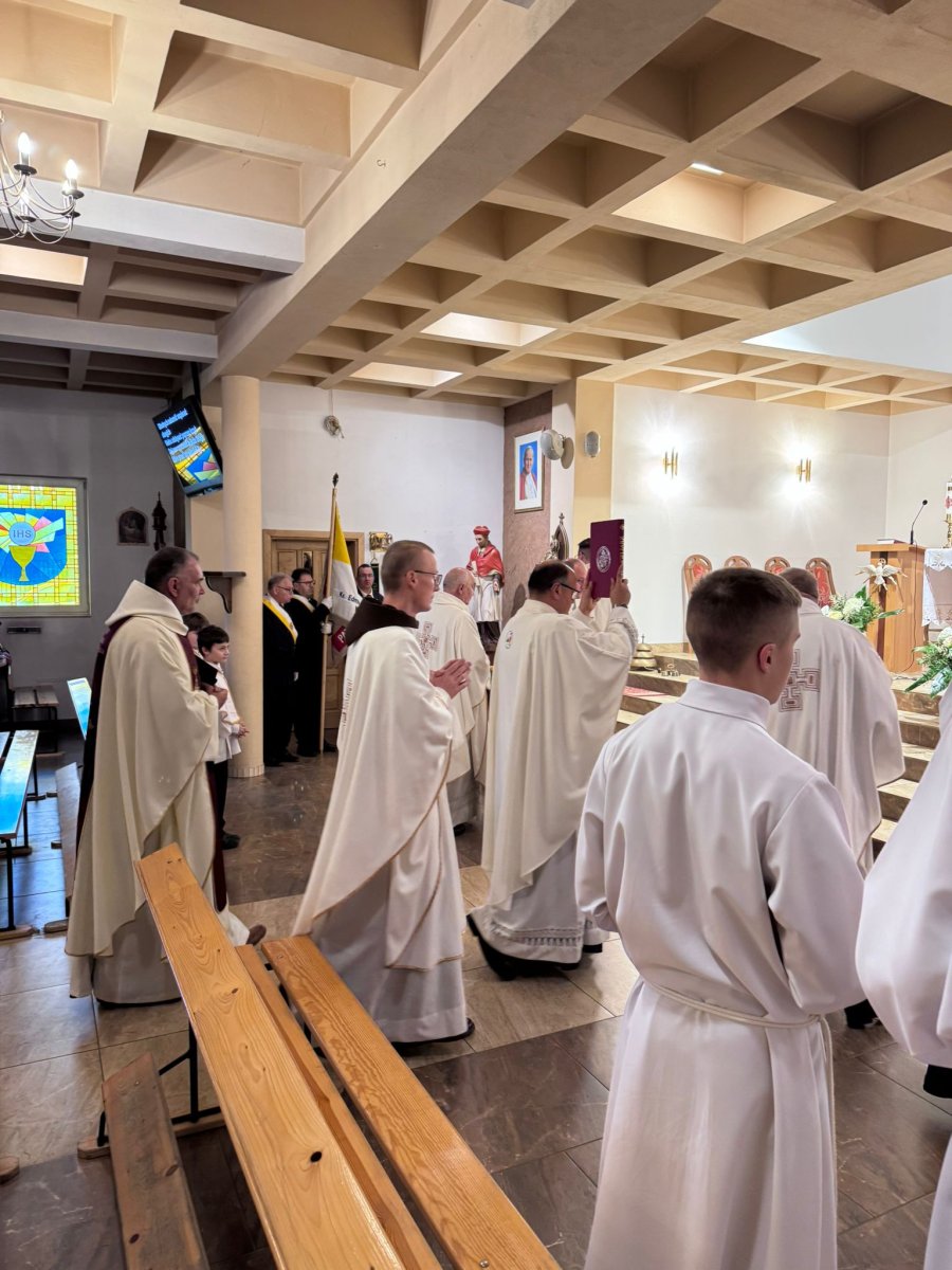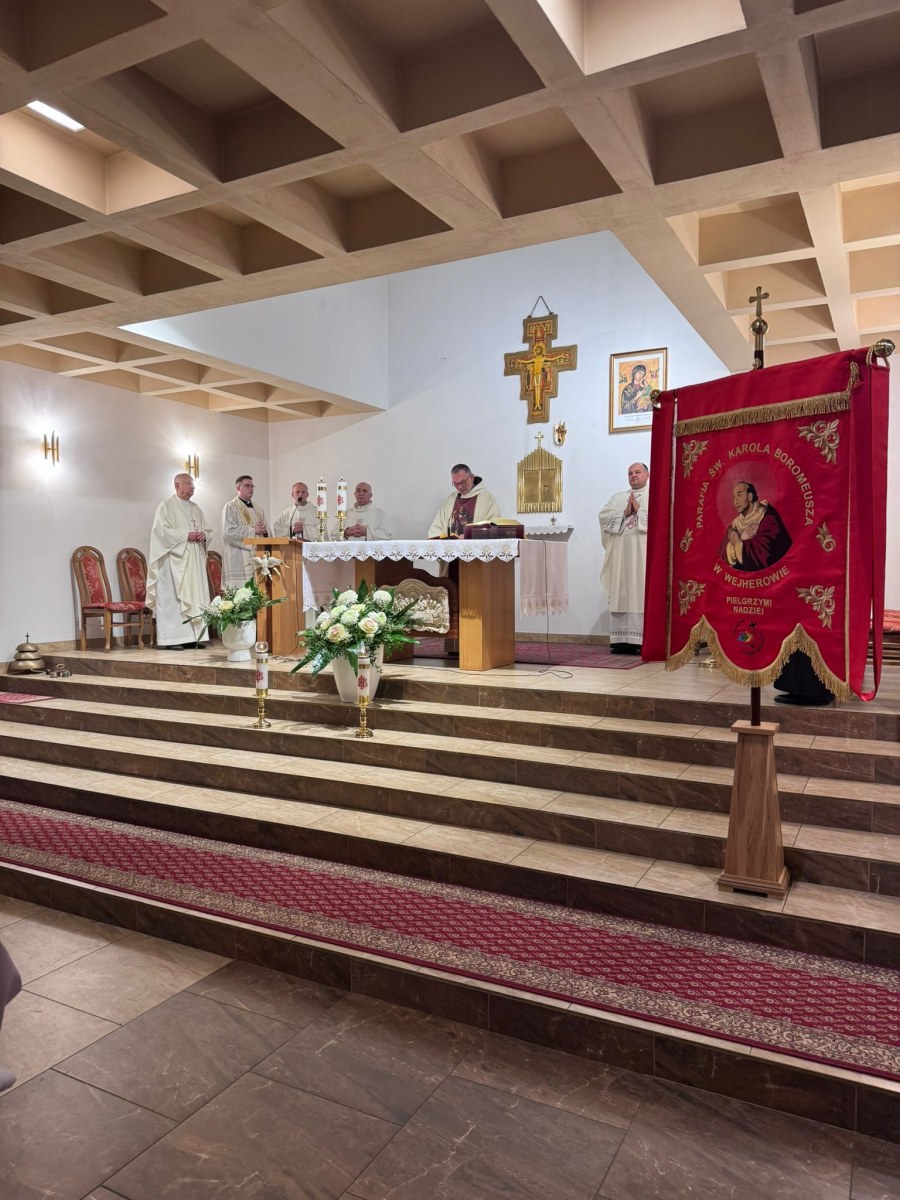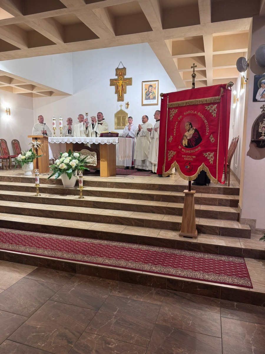 W niedzielę, 9 listopada 2025 przeżywaliśmy w naszej parafii uroczystość odpustową ku czci naszego patrona św. Karola Boromeusza. Suma odpustowa z udziałem kapłanów dekanatu oraz księży gości była sprawowana o godz. 12.30. Kazania odpustowe głosił o. Kamil Paczkowski, gwardian klasztoru franciszkanów w Wejherowie. Podczas uroczystej Sumy poświęcona została pierwsza w historii naszej parafii chorągiew procesyjna. Chorągiew z jednej strony przedstawia wizerunek naszego patrona i upamiętnia przeżywany w Kościele Rok Święty. Na drugiej stronie znajduje się logo naszej Archidiecezji, która w tym roku świętuje 100 lecie swego powstania.