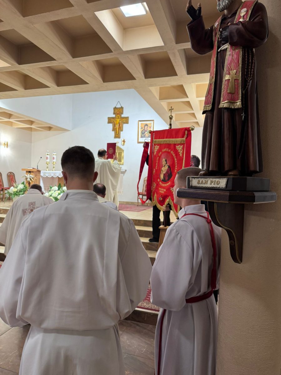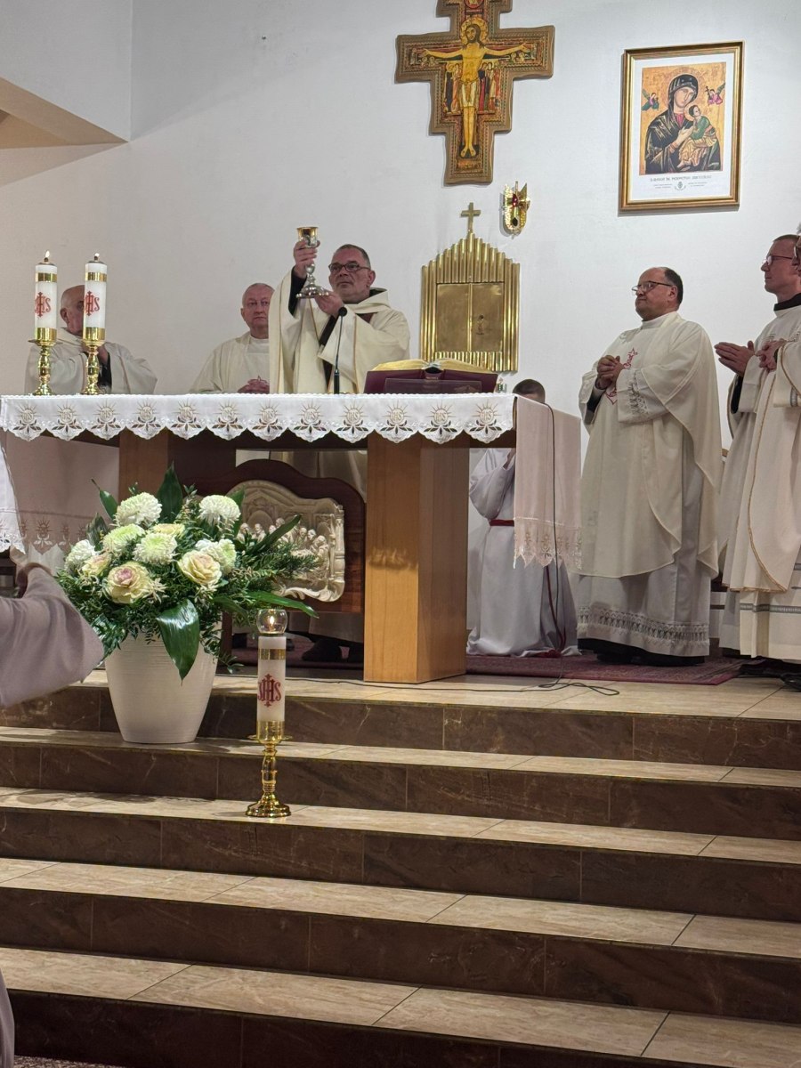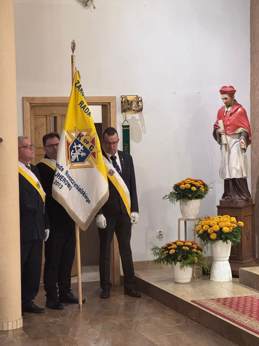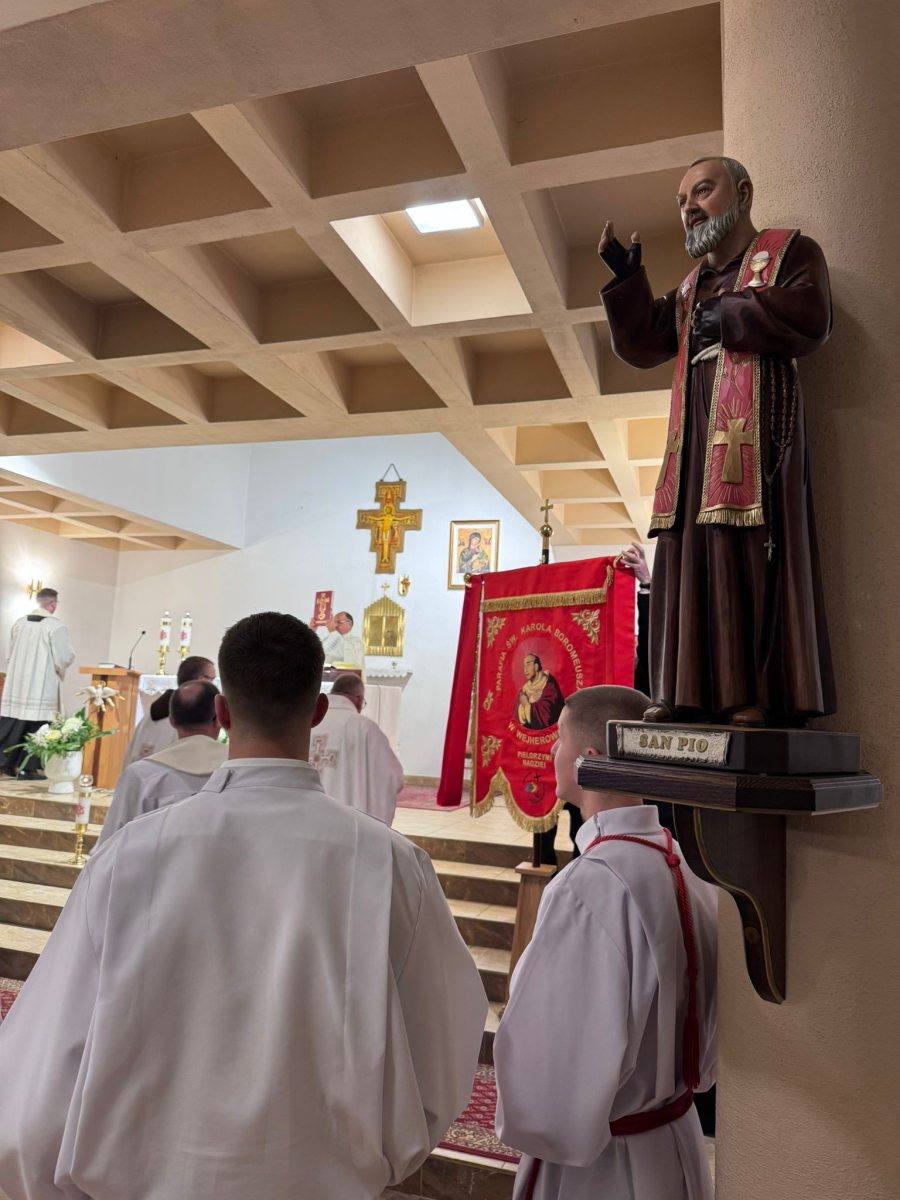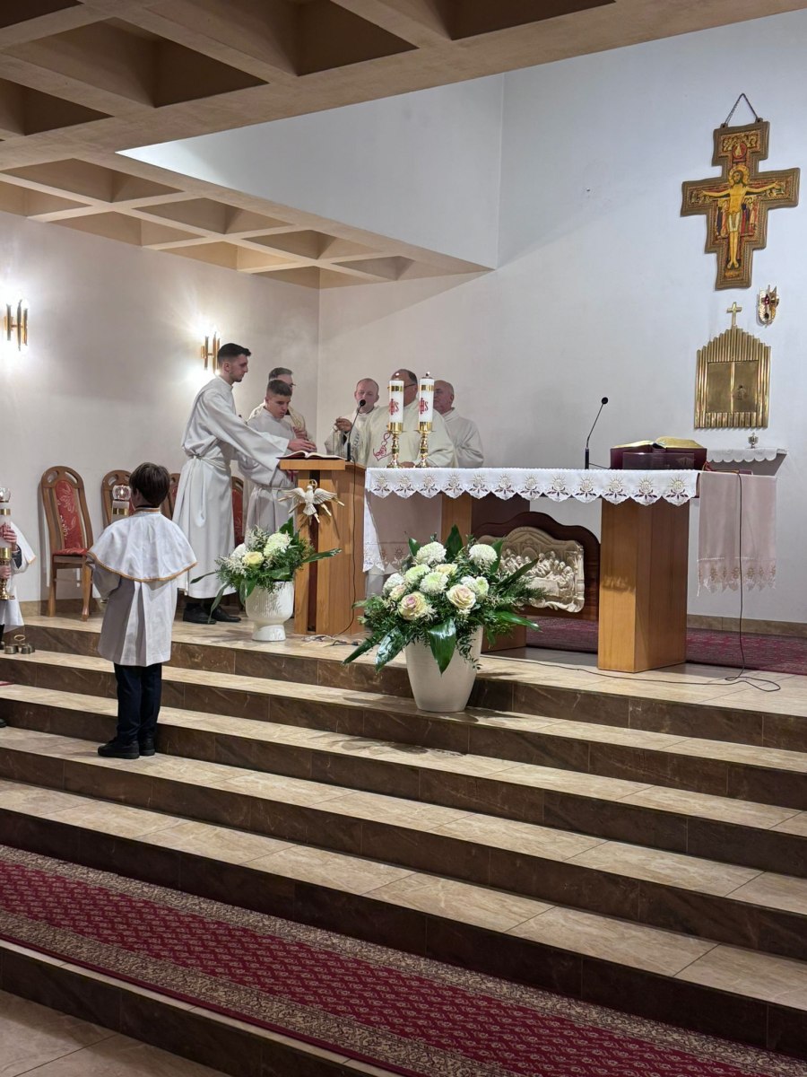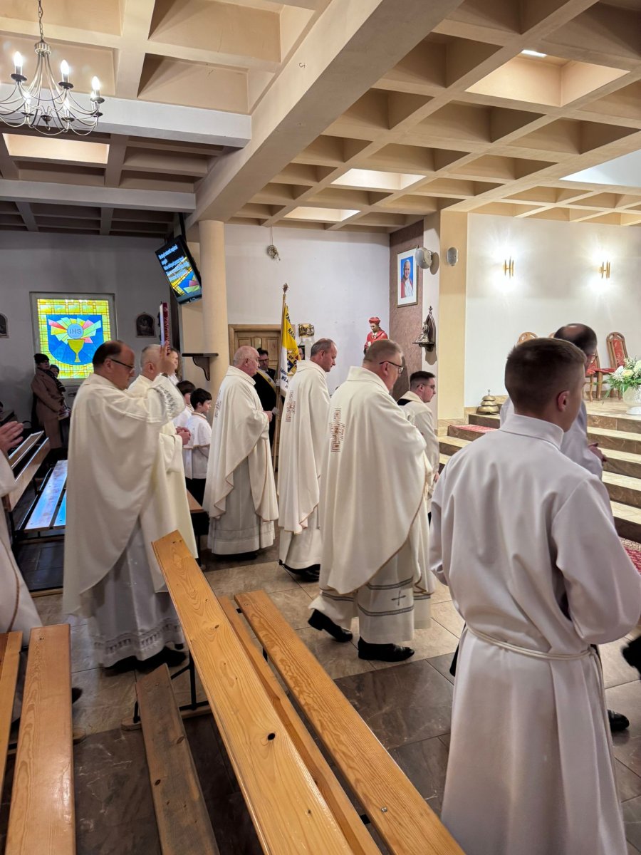 W niedzielę, 9 listopada 2025 przeżywaliśmy w naszej parafii uroczystość odpustową ku czci naszego patrona św. Karola Boromeusza. Suma odpustowa z udziałem kapłanów dekanatu oraz księży gości była sprawowana o godz. 12.30. Kazania odpustowe głosił o. Kamil Paczkowski, gwardian klasztoru franciszkanów w Wejherowie. Podczas uroczystej Sumy poświęcona została pierwsza w historii naszej parafii chorągiew procesyjna. Chorągiew z jednej strony przedstawia wizerunek naszego patrona i upamiętnia przeżywany w Kościele Rok Święty. Na drugiej stronie znajduje się logo naszej Archidiecezji, która w tym roku świętuje 100 lecie swego powstania.